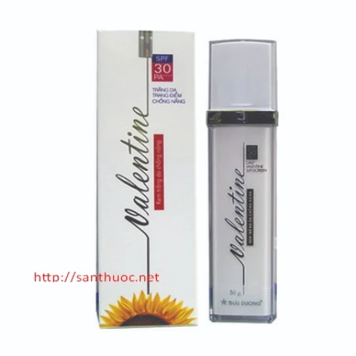 Sàn thuốc xin giới thiệu sản phẩm không thể thiếu được trước khi đi ra khỏi nhà giữa trời nắng, đó là kem chống năng ValentineSPF30-50 của nhà sản xuất Công Ty Cổ Phần Sao Thái Dương, với công dụng của kem sẽ giúp bảo vệ làn da của bạn trước ánh nắng mặt trời, đồng thời dưỡng da, chống lão hóa để giúp có làn da khỏe mạnh nhất.